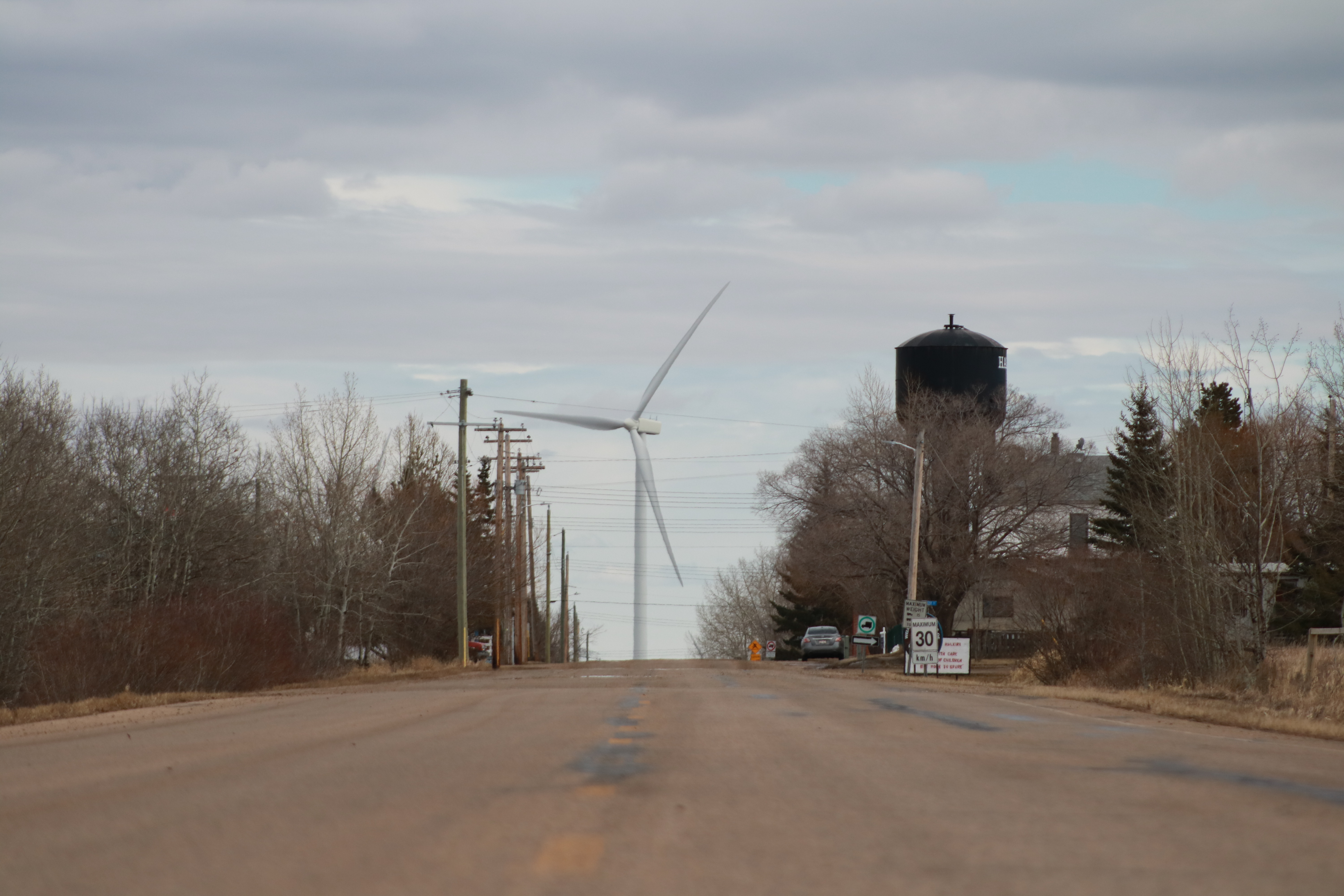 We did a quick trip to Coronation to pick up some more kinesiology tape, and then a quick run out to Halkirk to drop off the daffodil boxes for the Canadian Cancer Society’s usual April campaign. I had the camera along with me, and managed to get some shots of the first ducks of the season in our area and a few of the windfarm near Halkirk. Unfortunately the ducks photo’s didn’t turn out because by the time I stopped and got the camera out they had moved to far away.