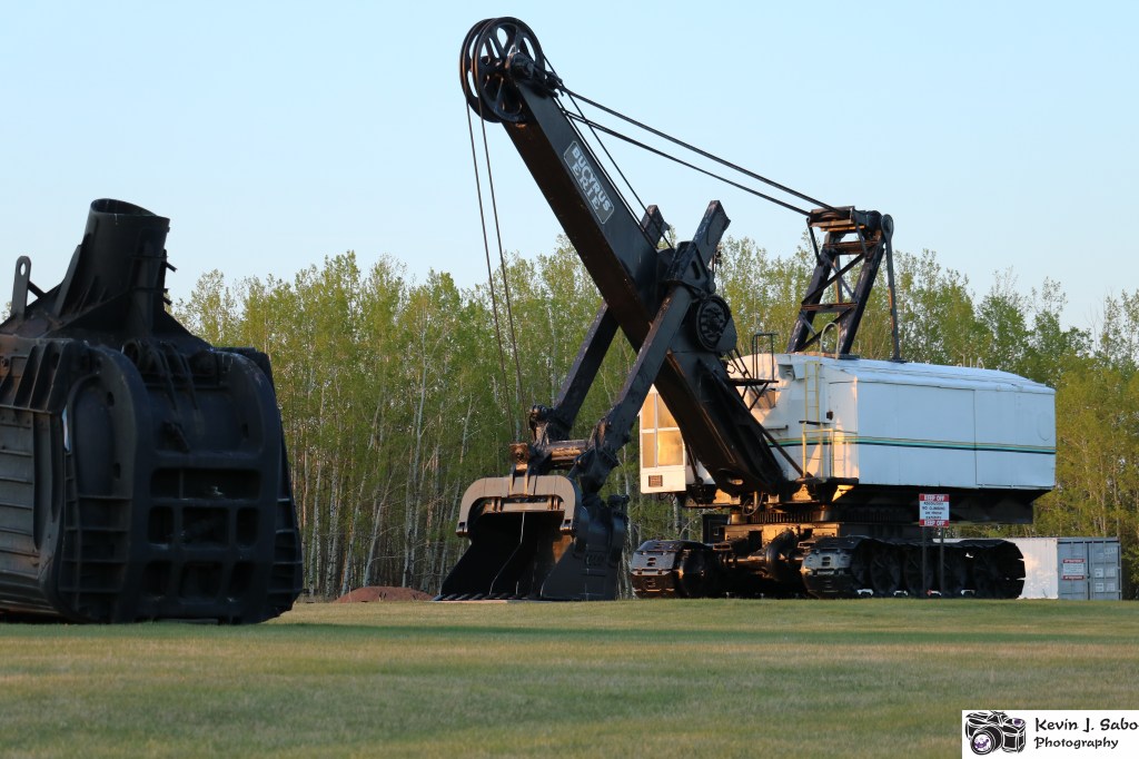 The photo above is another shovel, one that is on display near the mine in our county. As you can see in the photo, the direct sunlight hitting the shovel above has a lot more orange in it than during the day when the sun is over head. This results in the light being much softer, and much nicer to take photos in. This light is the reason why the hour leading up to sunset is referred to as the “golden hour.”
