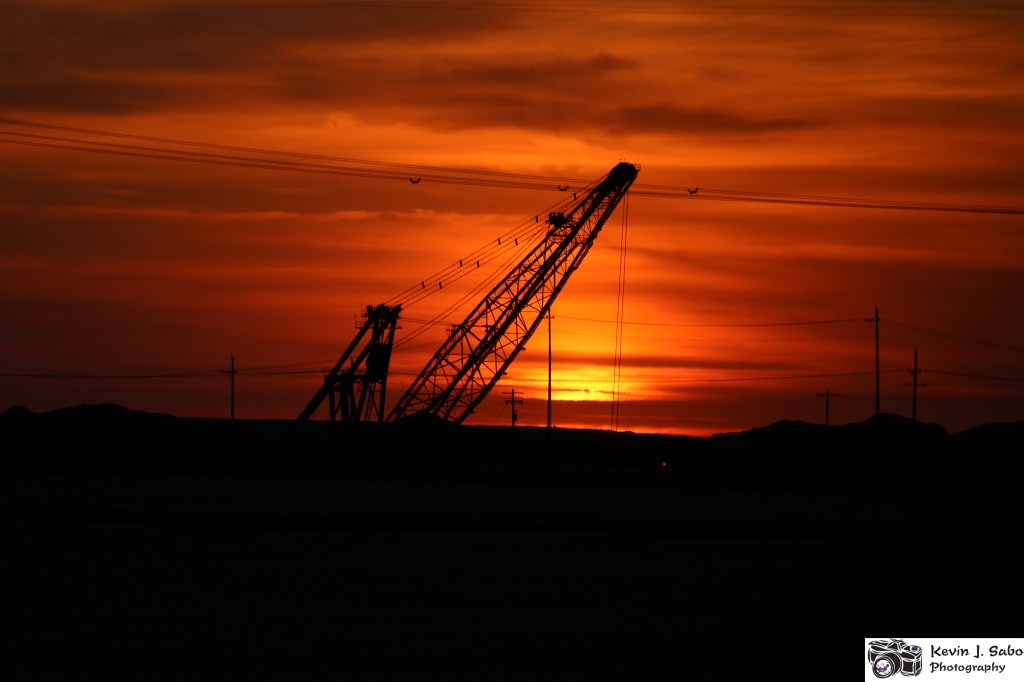 I’m particularly happy with some of the sunset photos I’ve been able to take, such as the one above, which has the silhouette of a coal shovel at our local coal mine.