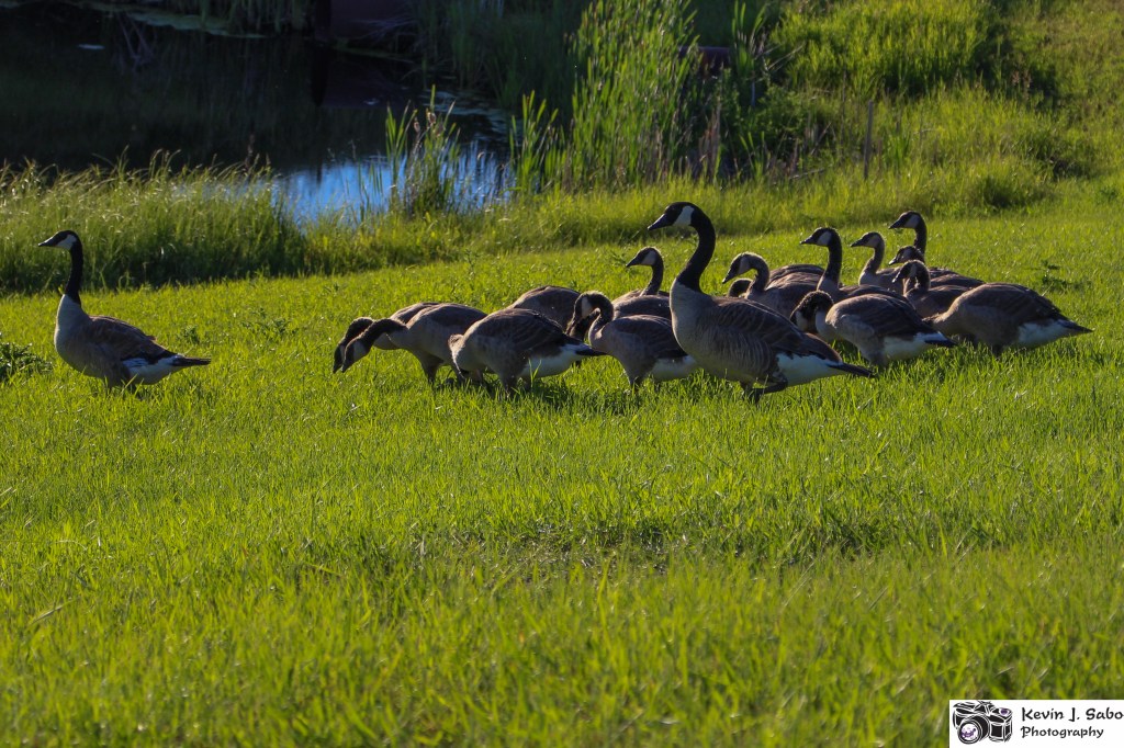 After dessert we headed home, though I got sidetracked by a gaggle of geese crossing the highway a few hundred feet away from us, so I pulled over, grabbed my camera and started shooting some pics of one of the goose families that lives in town during the summer.